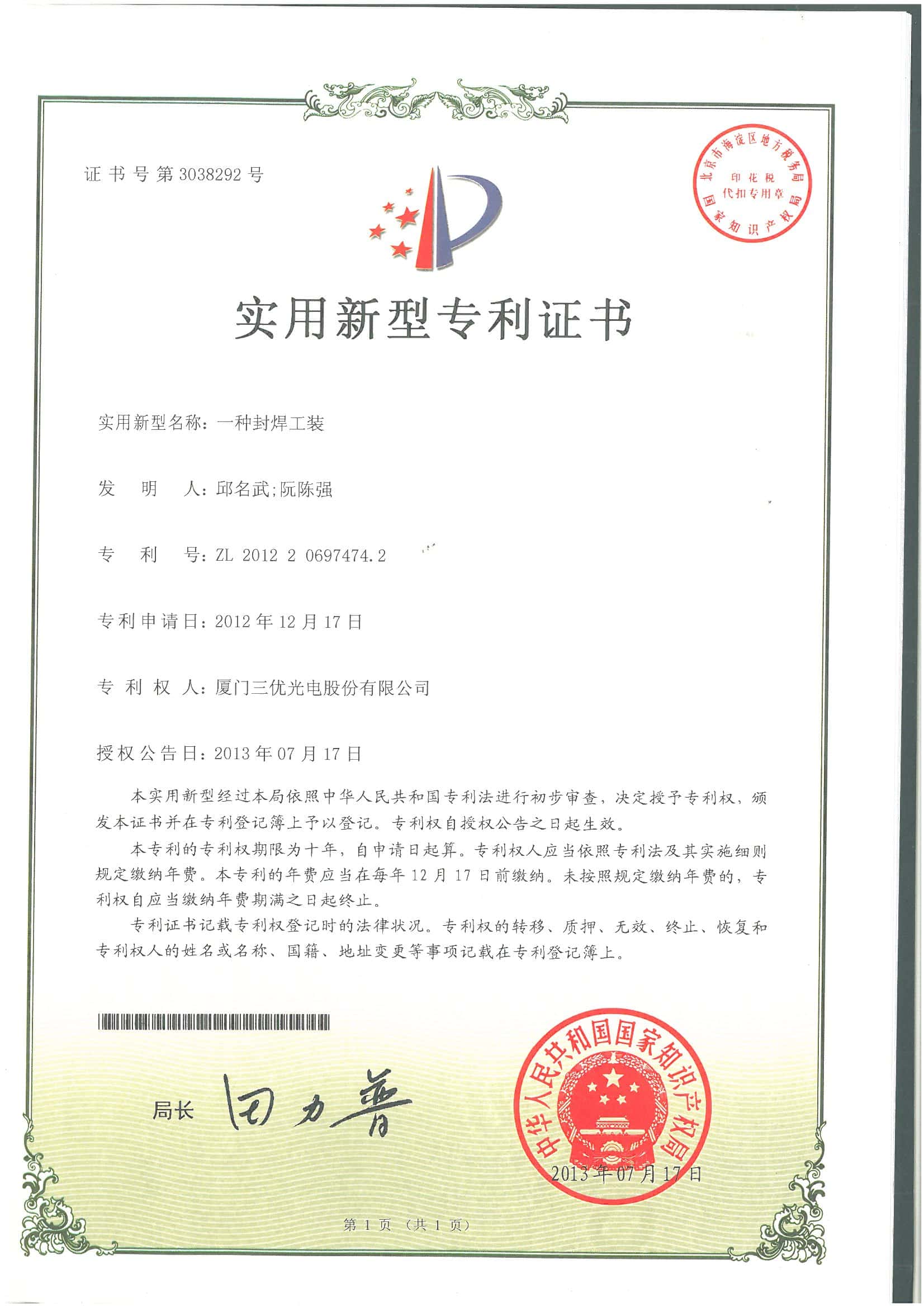 SAN-U Optronics has undertaken more than 20 scientific research projects, including 6 national level and 2 major scientific and technological projects in Xiamen. It has formed 16 invention patents and more than 40 utility model patents, and all scientific research achievements have been industrialized, generating good economic benefits.